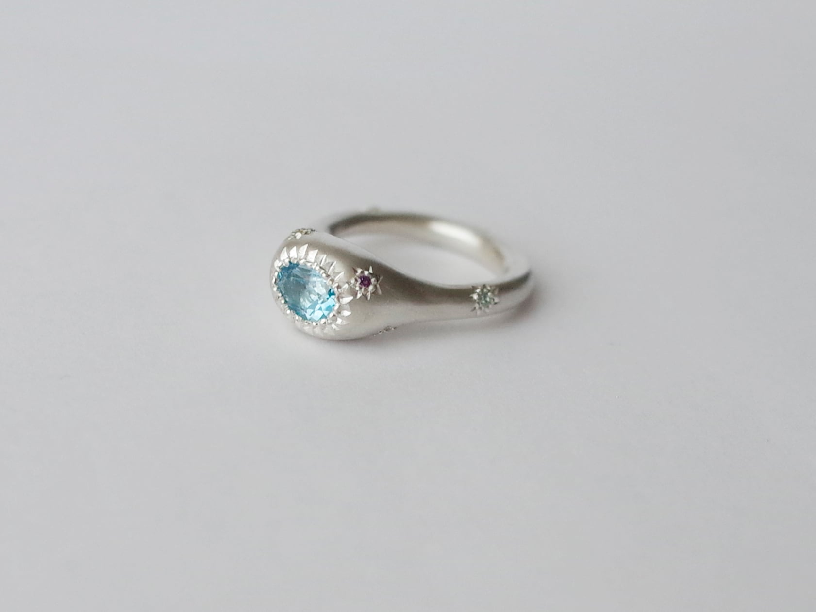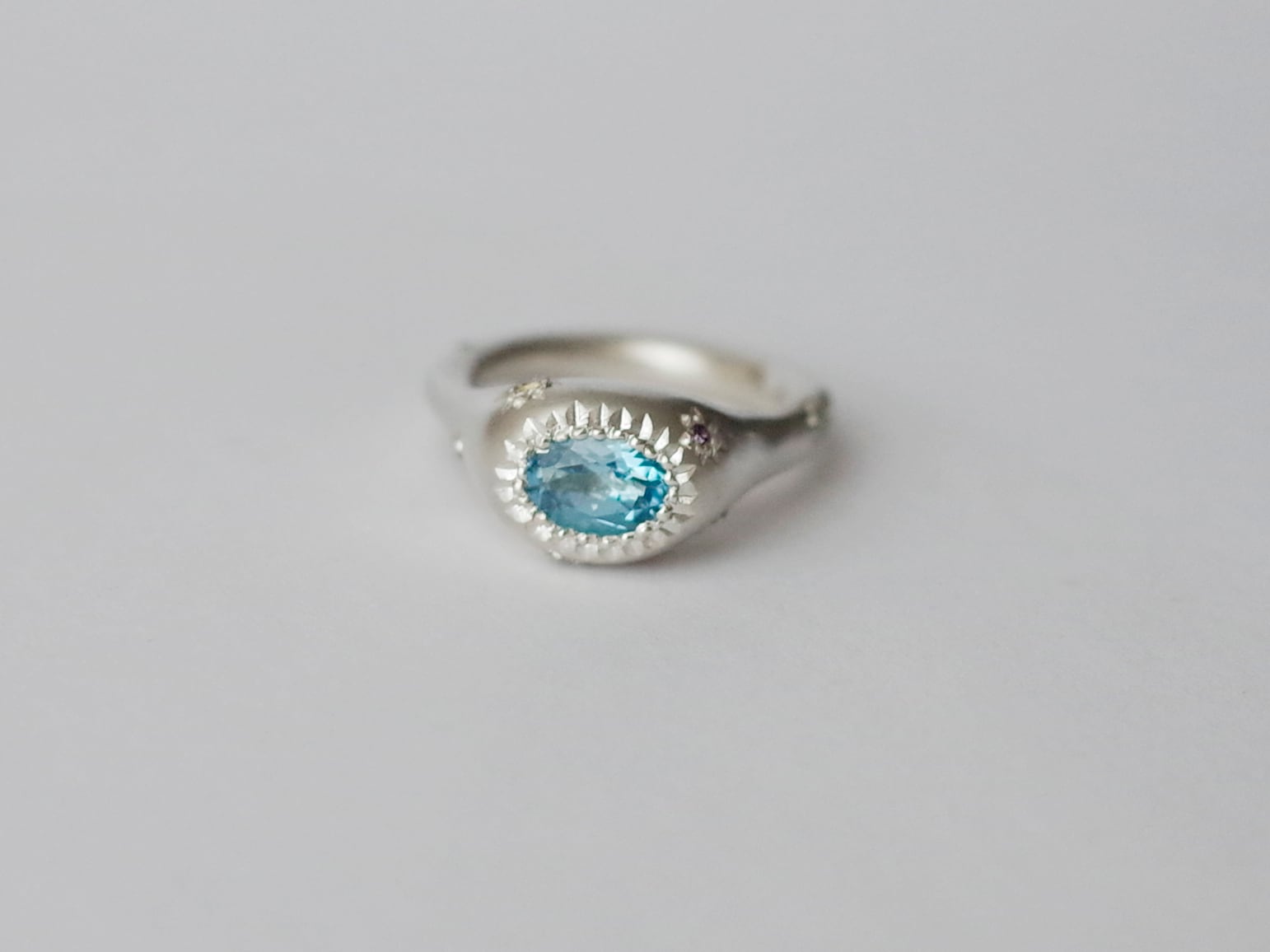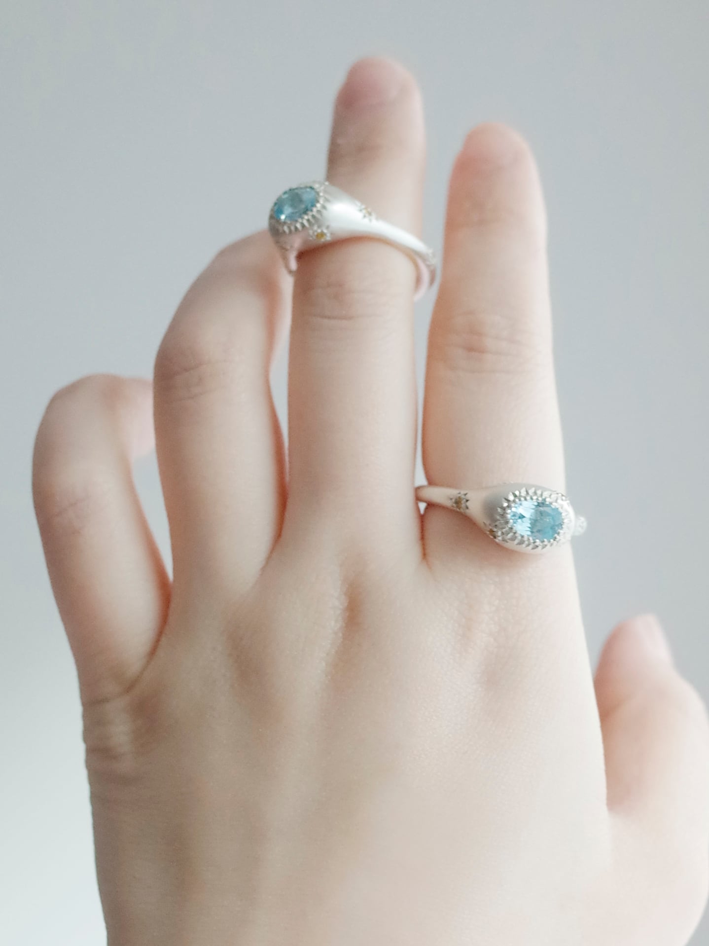 Skábma Ring 5×7 という5mm×7mmの天然石のブルートパーズをトップに留めている指輪になります。
