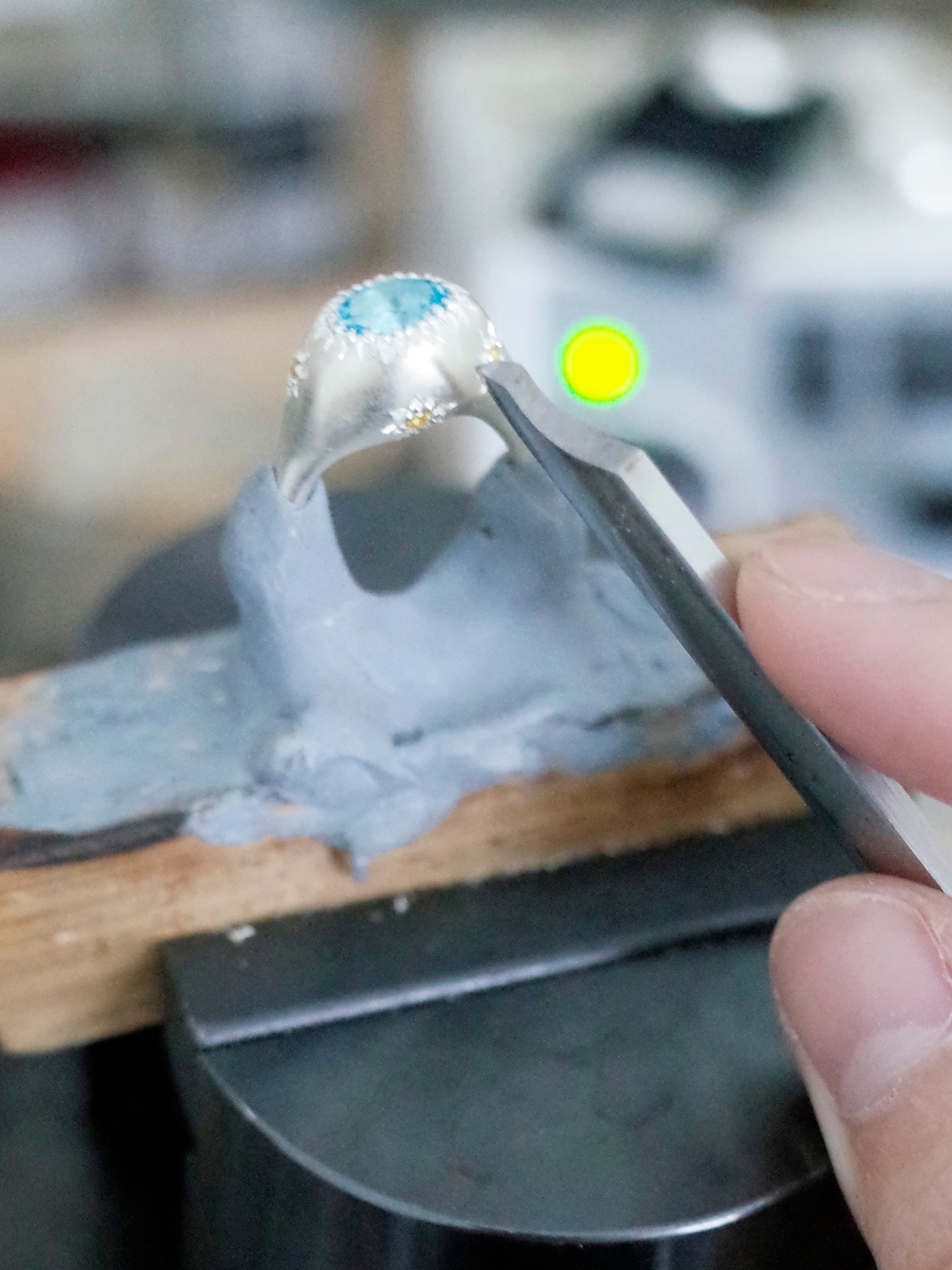 地金はsilver925で裏抜きをしていないため、トップに重みがあり、ころんした印象です。